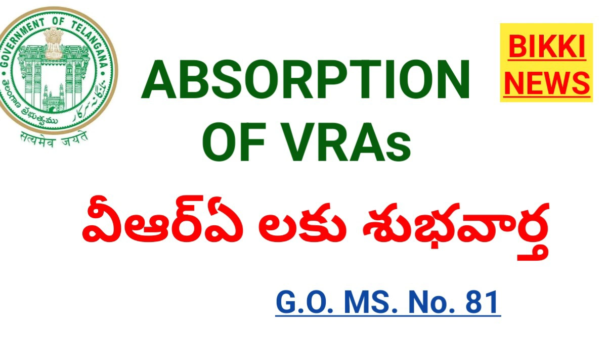 రాష్ట్రవ్యాప్తంగా ఉన్న 16,758 మంది వీఆర్ఏలను వివిధ ప్రభుత్వ శాఖల్లో శాశ్వత ప్రాతిపదికన విలీనం చేస్తూ రెవెన్యూ శాఖ G.O.Ms.No.81 పేరుతో కీలక ఉత్తర్వులు జారీ చేసింది.