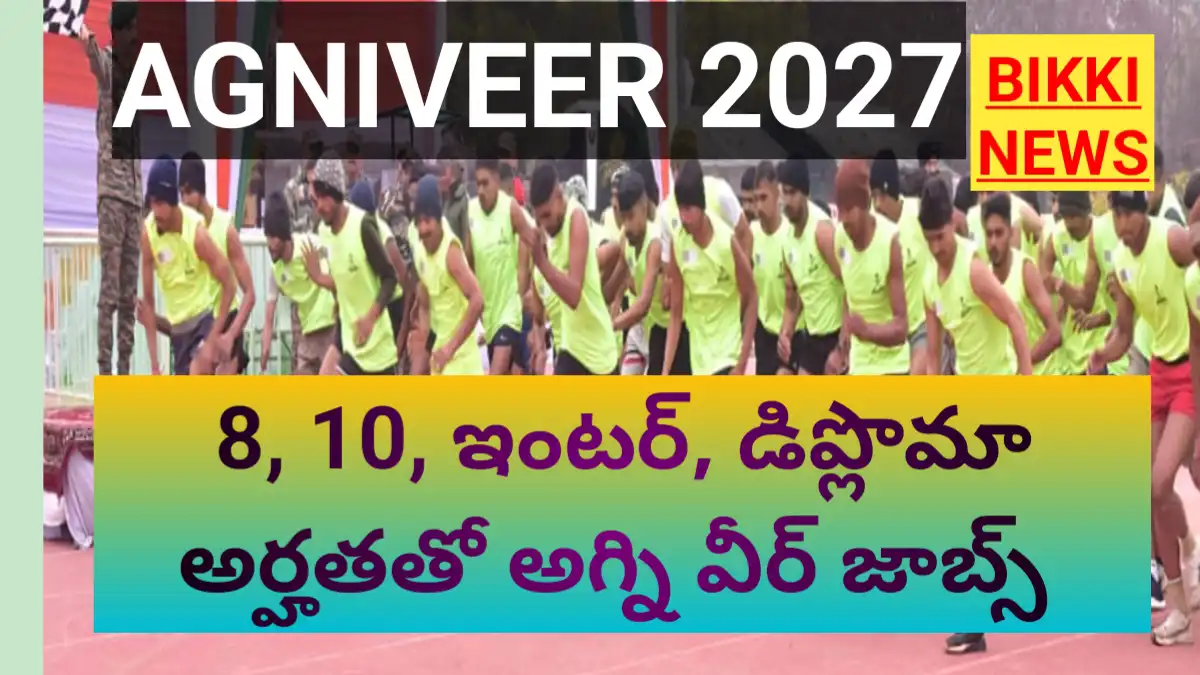 BIKKI NEWS (FEB. 15) : AGNIVEER 2027 NOTIFICATION and APPLICATION LINK. అగ్ని వీర్ 2027 నోటిఫికేషన్ లు విడుదలయ్యాయి వీటికి సంబంధించి దరఖాస్తు ప్రక్రియ కూడా ప్రారంభమైంది. తెలుగు రాష్ట్రాల కోసం సంబంధించి సికింద్రాబాద్, గుంటూరు, విశాఖపట్నం రిక్రూట్మెంట్ హెడ్ క్వార్టర్స్ ప్రకటనలు విడుదల చేశాయి.