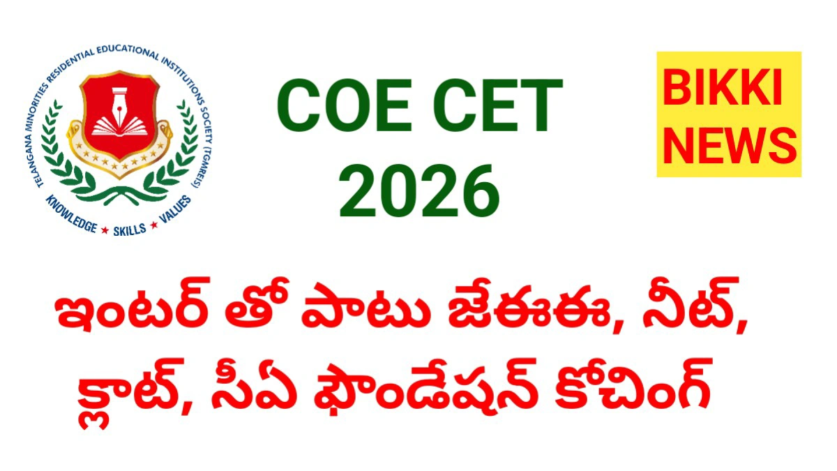 మైనారిటీ గురుకుల COE CET 2026 పరీక్షను ఫిబ్రవరి 12 న నిర్వహించనున్నారు.