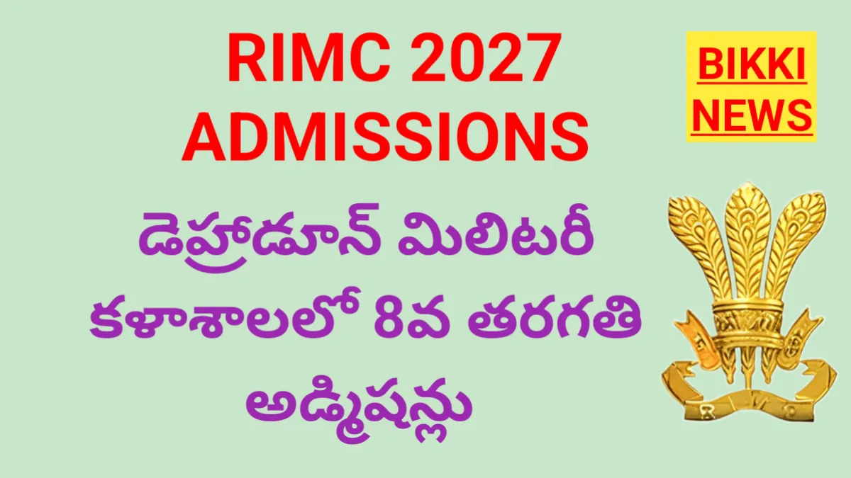 BIKKI NEWS (FEB. 19) : Dehradun RIMC admissions January 2027 notification. డెహ్రాడూన్లోని ప్రతిష్టాత్మక రాష్ట్రీయ ఇండియన్ మిలిటరీ కాలేజీ (RIMC)లో 8వ తరగతి ప్రవేశాల కోసం నోటిఫికేషన్ విడుదలైంది. తెలంగాణ రాష్ట్రానికి సంబంధించి ఈ ప్రవేశ పరీక్షను నిర్వహించే బాధ్యతను SCERT (స్టేట్ కౌన్సిల్ ఆఫ్ ఎడ్యుకేషనల్ రీసెర్చ్ అండ్ ట్రైనింగ్) చేపట్టింది.