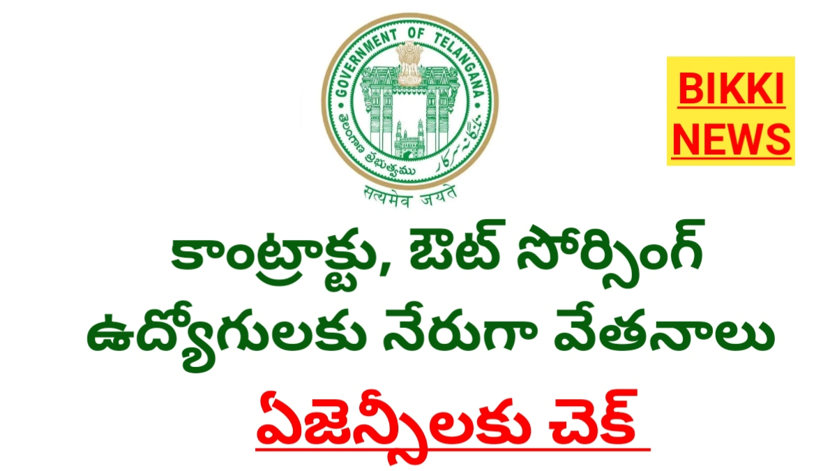 Direct salaries for contract and out sourcing employees. కాంట్రాక్ట్ ఔట్సోర్సింగ్ ఉద్యోగుల బ్యాంక్ ఖాతాలోకి నేరుగా వేతనాలు వేయాలని తెలంగాణ రాష్ట్ర ప్రభుత్వం కీలక నిర్ణయం తీసుకున్నట్లు సమాచారం.