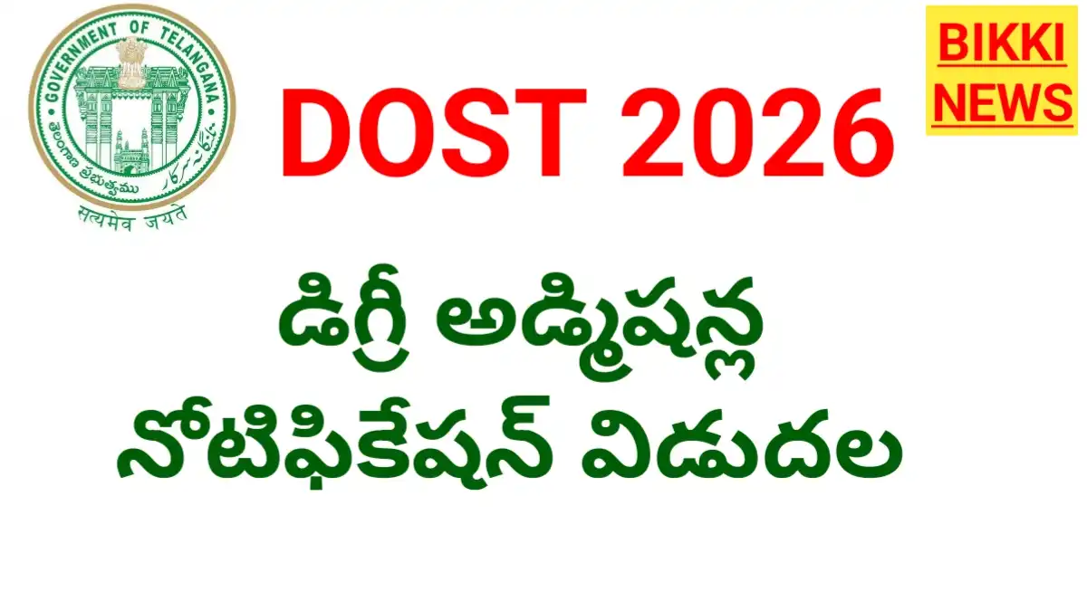 హైదరాబాద్ (ఏప్రిల్ 13) : DOST 2026 NOTIFICATION RELEASED. తెలంగాణ రాష్ట్రంలోని డిగ్రీ కళాశాలల్లో 2026-27 విద్యా సంవత్సరానికి డిగ్రీ అడ్మిషన్ల కొరకు దోస్త్ 2026 నోటిఫికేషన్ను ఉన్నత విద్యా మండలి ఛైర్మన్ బాలకృష్ణారెడ్డి విడుదల చేశారు.