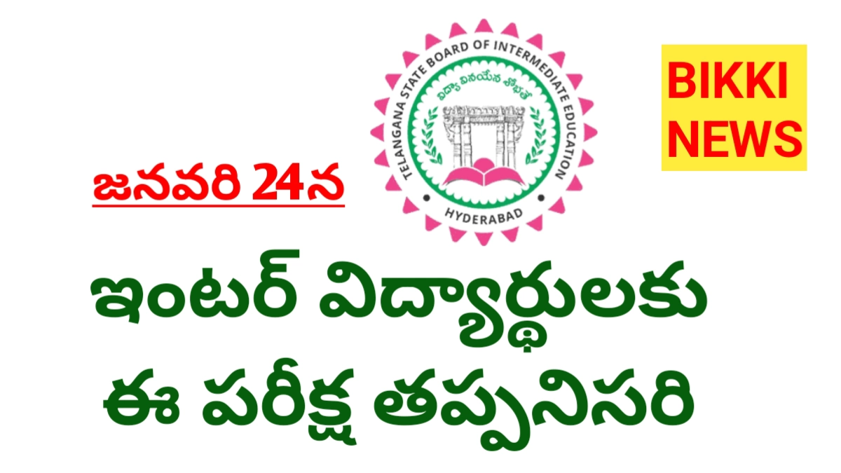 జనవరి 24 ఉదయం 10.00 నుండి ఈ పరీక్ష అన్ని జూనియర్ కళాశాలలో నిర్వహించనున్నారు. ఎందుకు సంబంధించిన హాల్ టికెట్లను ఇప్పటికే విద్యార్థులకు అందుబాటులో ఉంచారు.