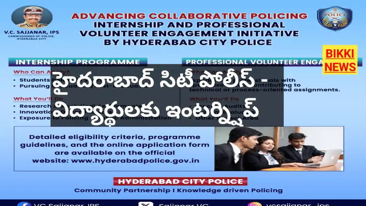 BIKKI NEWS (FEB. 22) : HYDERABAD CITY POLICE INTERNSHIP NOTIFICATION. హైదరాబాద్ సిటీ పోలీస్ విభాగం విద్యార్థులకు ఇంటర్న్షిప్ కార్యక్రమం కోసం నోటిఫికేషన్ జారీ చేసింది.