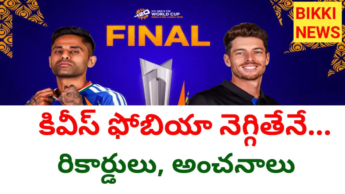 BIKKI NEWS (MAR. 08) : Icc T20 World Cup Final 2026 Today IND VS NZ నేడు అహ్మదాబాద్లోని నరేంద్ర మోదీ స్టేడియం వేదికగా జరగనున్న ICC T20 వరల్డ్ కప్ 2026 ఫైనల్ భారత్ మరియు న్యూజిలాండ్ మధ్య రసవత్తర పోరుకు సిద్ధమైంది. డిఫెండింగ్ ఛాంపియన్గా బరిలోకి దిగుతున్న టీమ్ ఇండియా, కివీస్ జట్టుపై ఉన్న పాత రికార్డులను తిరగరాసి మూడోసారి ట్రోఫీని ముద్దాడాలని పట్టుదలతో ఉంది.