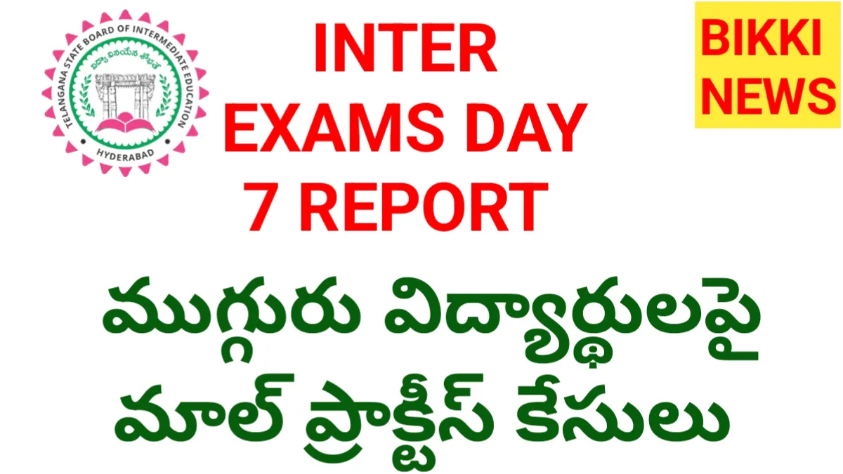 BIKKI NEWS (MAR. 05) : INTER EXAMS DAY 7 REPORT. తెలంగాణలో ఇంటర్మీడియట్ వార్షిక పరీక్షలు ప్రశాంతంగా కొనసాగుతున్నాయి. గురువారం (మార్చి 5, 2026) నాడు జరిగిన మొదటి సంవత్సరం పరీక్షలకు సంబంధించిన వివరాలను తెలంగాణ స్టేట్ బోర్డ్ ఆఫ్ ఇంటర్మీడియట్ ఎడ్యుకేషన్ (TGBIE) విడుదల చేసింది. ఈరోజు జరిగిన మ్యాథమెటిక్స్-1B, జువాలజీ-1 మరియు హిస్టరీ-1 పరీక్షలకు విద్యార్థులు భారీ సంఖ్యలో హాజరయ్యారు.