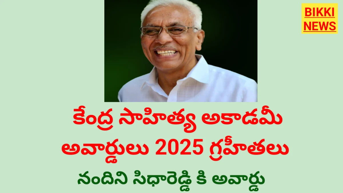 BIKKI NEWS (MAR. 17) : KENDRA SAHITYA AKADEMI AWARDS 2025. కేంద్ర సాహిత్య అకాడమీ 2026 (2025 సంవత్సరానికి గానూ) అవార్డుల ప్రకటన వెలువడింది. తెలుగు సాహితీ లోకానికి గర్వకారణంగా ప్రముఖ కవి, రచయిత నందిని సిధారెడ్డి ఈ ప్రతిష్టాత్మక అవార్డుకు ఎంపికయ్యారు. ఈ వార్తకు సంబంధించిన పూర్తి వివరాలు మరియు విజేతల జాబితా మీకోసం.