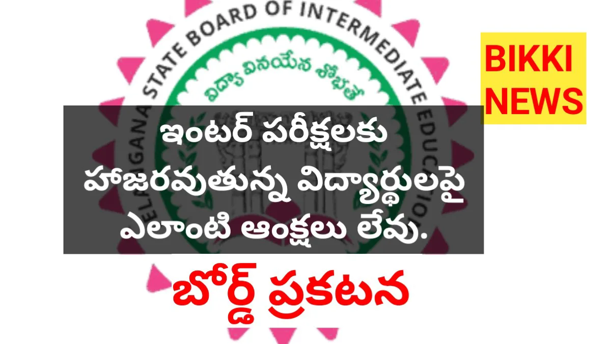 BIKKI NEWS (FEB. 24) : No signature need in hall tickets of inter exams. తెలంగాణలో ఇంటర్మీడియట్ పబ్లిక్ పరీక్షలు (IPE 2026) ఫిబ్రవరి 25 (బుధవారం) నుండి ప్రారంభం కానున్నాయి. ఈ నేపథ్యంలో తెలంగాణ స్టేట్ బోర్డ్ ఆఫ్ ఇంటర్మీడియట్ ఎడ్యుకేషన్ (TGBIE) కీలకమైన ప్రకటన విడుదల చేసింది. పరీక్షలకు హాజరయ్యే విద్యార్థుల కేవలం హాల్ టికెట్ (Hall ticket Download link) ను చూపించడం ద్వారా పరీక్ష కేంద్రాల్లోకి అనుమతి ఉంటుంది. ఎలాంటి ఇతర గుర్తింపు కార్డులు అవసరం లేదని స్పష్టం చేసింది.