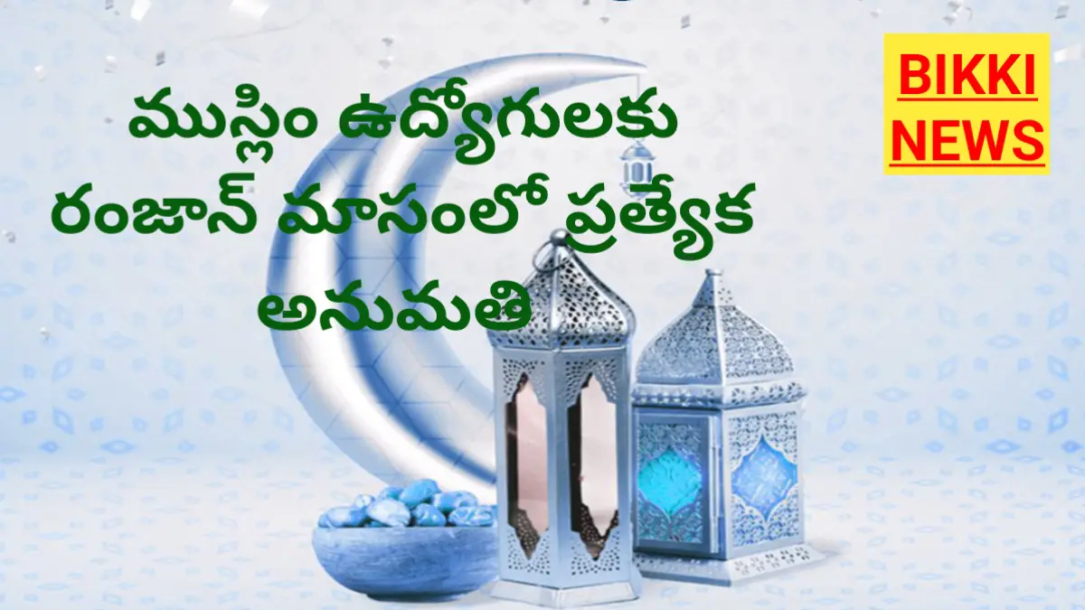 BIKKI NEWS (FEB. 17) : One hour permission to muslim employees in Ramzan month. రంజాన్ పవిత్ర మాసం సందర్భంగా ముస్లిం ఉద్యోగులందరికీ కార్యాలయాలను గంట ముందు వదిలి వెళ్ళడానికి ప్రభుత్వం ఉత్తర్వులు జారీ చేసింది. (ఎంప్లాయిస్ న్యూస్)