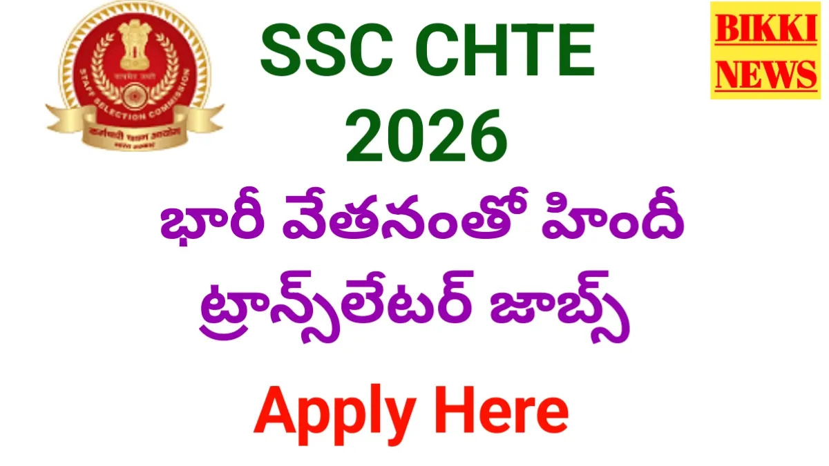 BIKKI NEWS (APRIL 24) : SSC CHTE 2026 NOTIFICATION. కంబైన్డ్ హిందీ ట్రాన్స్లేటర్స్ ఎగ్జామినేషన్ 2026 నోటిఫికేషన్ ను స్టాఫ్ సెలక్షన్ కమిషన్ విడుదల చేసింది. ఈ నోటిఫికేషన్ ద్వారా భారీ వేతనంతో కూడిన 84 ఉద్యోగాలను కేంద్రంలోని వివిధ మంత్రిత్వ శాఖలలో భర్తీ చేయనున్నారు.