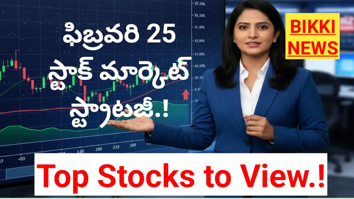 BIKKI NEWS (FEB. 25) : Stock market strategy on February 25th. ఫిబ్రవరి 24, 2026 (మంగళవారం) నాడు భారత స్టాక్ మార్కెట్లు భారీ అమ్మకాల ఒత్తిడికి లోనయ్యాయి. వరుసగా రెండు రోజుల లాభాలకు బ్రేక్ వేస్తూ సూచీలు 1 శాతానికి పైగా నష్టపోయాయి. ఈ నేపథ్యంలో రేపటి (ఫిబ్రవరి 25, 2026) బుధవారం ట్రేడింగ్ వ్యూహం మరియు మార్కెట్ విశ్లేషణ ఇక్కడ ఉంది: