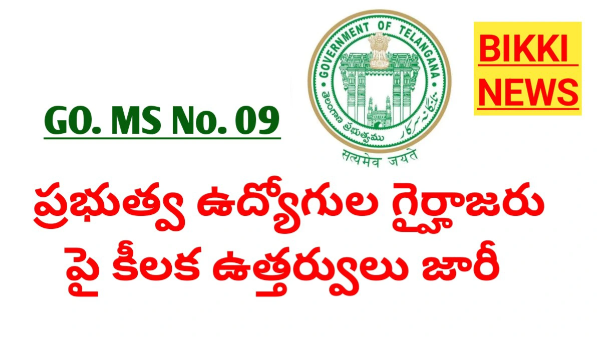 Strict rules on the absenteeism of government employees. తెలంగాణ రాష్ట్ర ప్రభుత్వ ఉద్యోగుల విధులకు గైర్హాజరు కావడంపై తెలంగాణ ప్రభుత్వం కీలక నిర్ణయం తీసుకుంది. తెలంగాణ సివిల్ సర్వీసెస్ (నియమావళి, నియంత్రణ మరియు అప్పీల్) రూల్స్, 1991కి సవరణలు చేస్తూ జీ.ఓ. ఎం.ఎస్. నెం. 9 (G.O.Ms.No. 9) జారీ చేసింది.