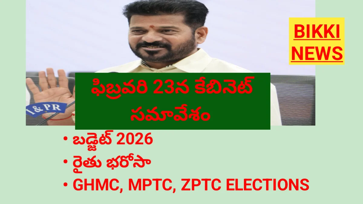 BIKKI NEWS (FEB. 17) : Telangana cabinet meeting on 23rd February. తెలంగాణ రాష్ట్ర కేబినెట్ ఫిబ్రవరి 23న మధ్యాహ్నం 3 గంటలకు సీఎం రేవంత్ రెడ్డి అధ్యక్షతన సమావేశం కానుంది.