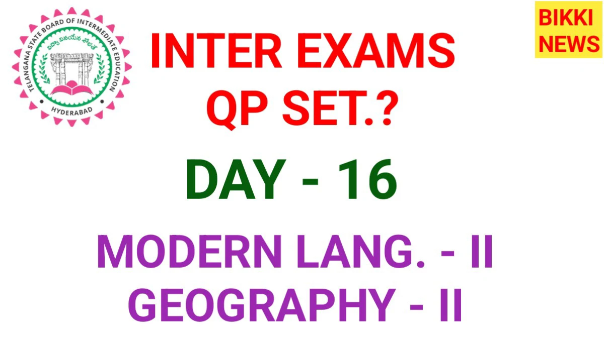 BIKKI NEWS (MAR. 18) : Today inter exams QP SET Day 16th. తెలంగాణ ఇంటర్మీడియట్ పబ్లిక్ పరీక్షలు 2026 లో భాగంగా ఈరోజు సెకండియర్ మోడ్రన్ లాంగ్వేజ్ – II & జియోగ్రఫి – IIపరీక్షలను సెట్ : A ప్రశ్నాపత్రంతో నిర్వహించాలని ఇంటర్మీడియట్ బోర్డు నిర్ణయించింది.