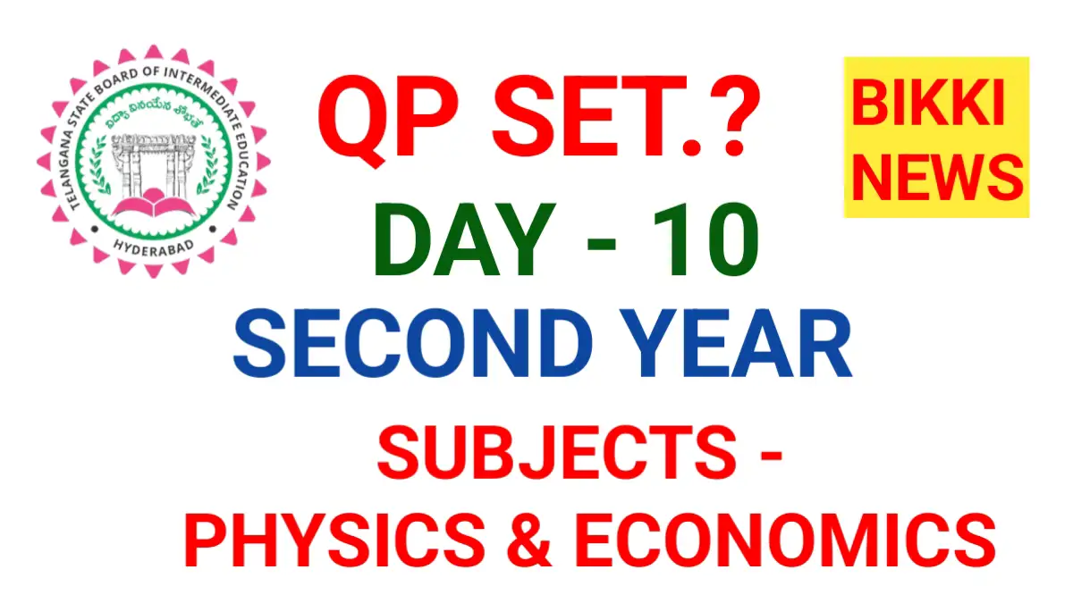 BIKKI NEWS (MAR. 10) : TODAY INTER EXAMS QP SET 10th March 2026. ఇంటర్మీడియట్ పబ్లిక్ పరీక్షలు 2026 లో భాగంగా ఈరోజు సెకండియర్ ఫిజిక్స్ – II, ఎకానమిక్స్ – II పరీక్షలను సెట్ :A ప్రశ్నాపత్రంతో నిర్వహించాలని ఇంటర్మీడియట్ బోర్డు నిర్ణయించింది.