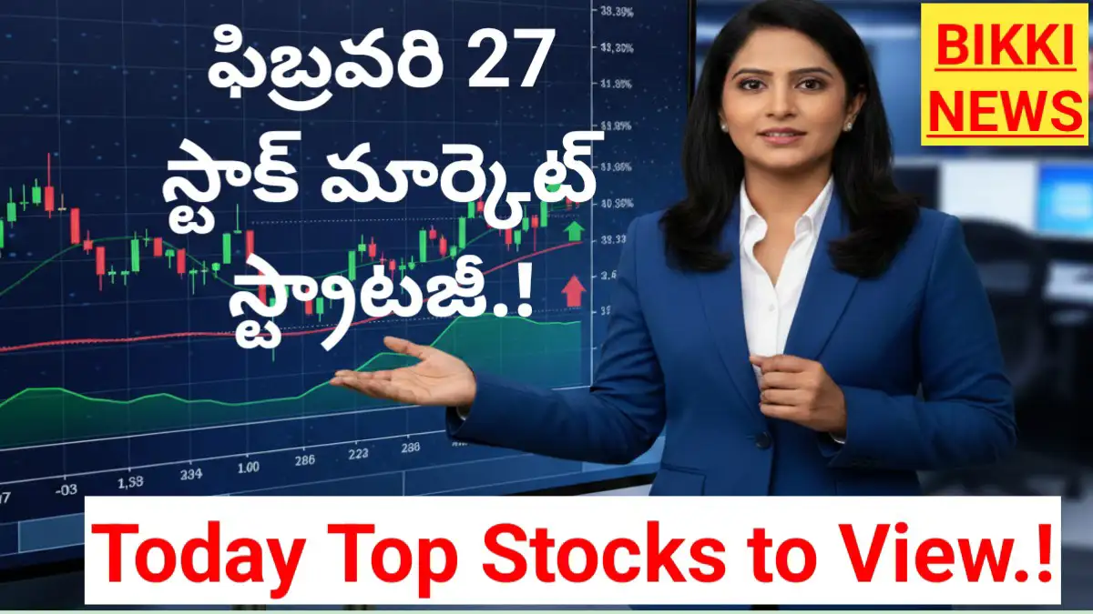 BIKKI NEWS (FEB. 27) : Today stock market strategy February 27th గురువారం మార్కెట్ రోజంతా ఒకే పరిధిలో (Range-bound) కదలాడింది. ఉదయం లాభాలతో ప్రారంభమైనప్పటికీ, హెవీ వెయిట్ షేర్లలో లాభాల స్వీకరణ కారణంగా చివరకు ఫ్లాట్గా ముగిసింది. నేడు విడుదల కానున్న భారత GDP గణాంకాలు మరియు కొత్త బేస్ ఇయర్ మార్పుల వార్తలు మార్కెట్ దిశను నిర్ణయించనున్నాయి.