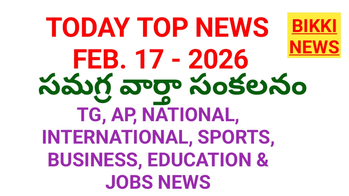 BIKKI NEWS (FEB. 17) : Today top news on 17th February 2026. తెలంగాణ, ఆంధ్రప్రదేశ్, జాతీయ, అంతర్జాతీయ, క్రీడా, బిజినెస్, విద్యా, ఉద్యోగ వార్తల సమాహారం.