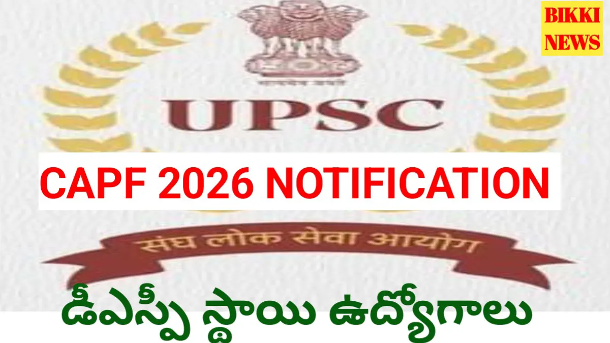 BIKKI NEWS (MAR. 10) : UPSC CAPF 2026 Notification దేశ రక్షణ రంగంలో అధికారి కావాలనుకునే నిరుద్యోగులకు కేంద్ర పబ్లిక్ సర్వీస్ కమిషన్ (UPSC) శుభవార్త చెప్పింది. సెంట్రల్ ఆర్మ్డ్ పోలీస్ ఫోర్సెస్ (CAPF)లో అసిస్టెంట్ కమాండెంట్ (Group A) పోస్టుల భర్తీకి అధికారిక నోటిఫికేషన్ విడుదల చేసింది. ఈ రిక్రూట్‌మెంట్ ద్వారా BSF, CRPF, CISF, ITBP మరియు SSB వంటి విభాగాలలో మొత్తం 349 ఖాళీలను భర్తీ చేయనున్నారు.