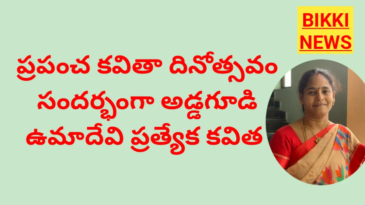 BIKKI NEWS (FEB. 20) : World Poetry day 2026 a poem by Addagudi Umadevi. ప్రపంచ కవితా దినోత్సవం సందర్భంగా అడ్డగూడి ఉమాదేవి రచించిన ప్రత్యేక కవిత.